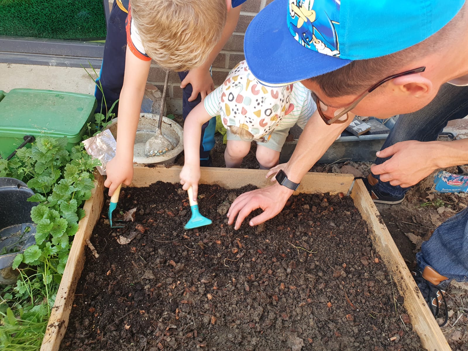 Accueil en famille, au Centre Social AMISC, activité autoure de le nature co-animée par une maman bénévole.