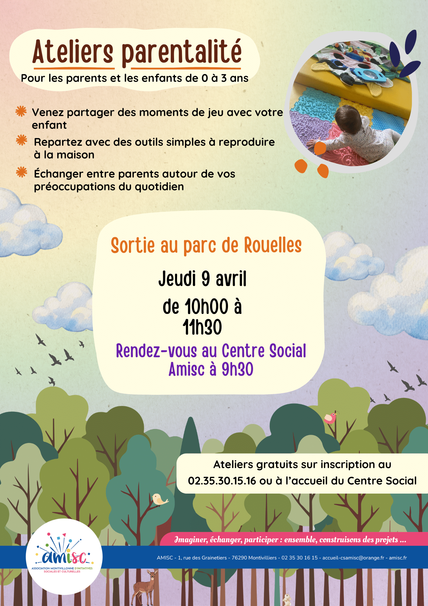 Jeudi 09 avril : Sortie au parc de Rouelles, rendez-vous au Centre Social AMISC à 9h30.